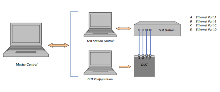 The test station is programmable hardware like FPGA, which is a traffic generator and configurable hardware to program the ethernet packet fields as per test case requirement(Negative test cases).